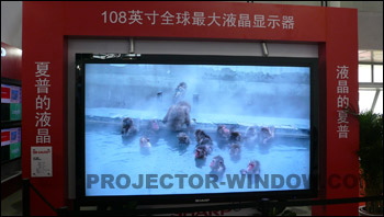 從1973年世界上首次搭載液晶的計算器首次上市到現在,夏普公司使液晶技術得到螺旋上升式發展,實現了大尺寸,高清化,超薄超輕等多種改善,夏普公司逐漸發展成為液晶電視業的頂級廠商。此次展會,夏普公司展出了AQUOS系列和專業顯示屏及2008年9月1日正式發售的108英寸全球最大液晶顯示器。展會現場,觀眾可以近距離的感受這款超大的平板液晶產品。108英寸液晶顯示器的屏幕尺寸達到了2386mm×1344mm,對角線長度為2738mm,采用廣角高精細ASV液晶,響應速度為6MS,具有1920×1080p的Full