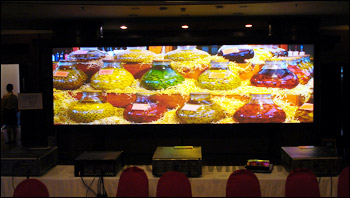 [投影之窗消息] 日前,“引領(lǐng)世界,共創(chuàng)未來”夏普-流明天地產(chǎn)品技術(shù)交流會在北京隆重舉行。1×3正投平面邊緣融合拼接專業(yè)投影解決方案在本次會議中進行了展示,這套系統(tǒng)是由夏普XG-P610XA專業(yè)投影機以及LUMEN