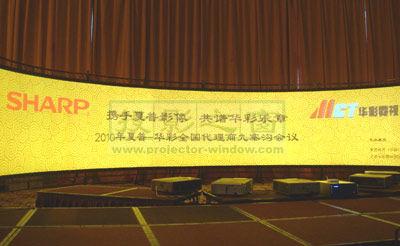 日前,采用夏普三芯片DLP投影機的五通道弧幕投影融合系統驚艷亮相夏普全國合作伙伴大會。該系統由一整張低增益邊緣融合投影幕、五臺夏普三芯片DLP投影機XG-P610XA(亮度7000流明、分辨率1024×768、鏡頭1.8-2.25:1)、