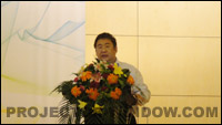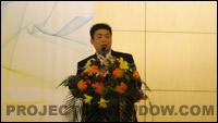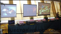 會議現場,由兩臺夏普XG-P610XA搭建的弧形背投融合系統進行了展示。XG-P610XA是一款采用3DLP顯示技術的投影機,具有高亮度、雙燈系統、低運行噪音等特點,主要應用于專業顯示領域、數字電影系統、大型會議室、禮堂展示及舞臺租賃等大型視頻工程。