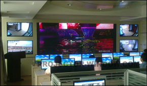 4臺夏普XG-P610XA投影機利用邊緣融合技術(shù)