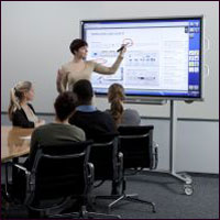 夏普PN-L系列觸控平板顯示器作為視頻會議系統,在不同地點的用戶可以實時在屏幕上交互,該系統的紅外傳感器,可迅速,準確地檢測到手指或觸摸筆的位置。PN
