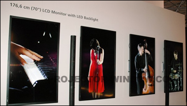 夏普60英寸專業顯示器:夏普PN-V601是全球最薄的60英寸專業級顯示產品,在色彩均勻性方面表現不俗,可提供框架,專為電視墻應用設計。
