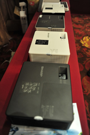 本次大會夏普公司還展示了其公司的投影機新品:XR-U2510超短焦系列投影機,夏普投影機產品的研發團隊,多年來一直秉承著誠意與創意的企業宗旨,引領業界發展動向,推出豐富多彩、獨具匠心的產品。水本達夫先生介紹了夏普公司百年的歷史發展進程,展示了夏普擁有的多個業界首創,業界第一的投影產品。蔣國祥先生系統的分析了2011年的夏普投影機的銷售情況及未來的發展方向,在2012年度夏普不但有XR-U2510超短焦系列投影機,同時還推出E系列、涵蓋教育、商務、娛樂等各行業9款投影機。