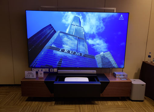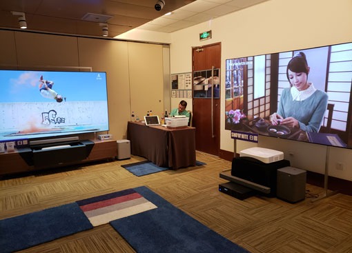 老牌投影機廠商夏普攜手合作伙伴,亮相此次盛會。在展會現場,夏普XG-LU300TA與XV-Z50000AX兩款新品共同打造了家用影院激光電視的應用案例,吸引了眾多觀眾的目光。