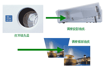 獨一無二的全自動開機功能,用戶只要按下電源開關,VPL-CX5就將自動打開鏡頭蓋,升起支腳調整好投影角度,同時它已自動偵測到了信號源輸入接口,立即播放演示內容,并且替您完成畫面梯形校正。