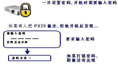 為了保障投影機的安全性,VPL-PX35具備了密碼識別功能,防止未經(jīng)許可的人擅自開機。