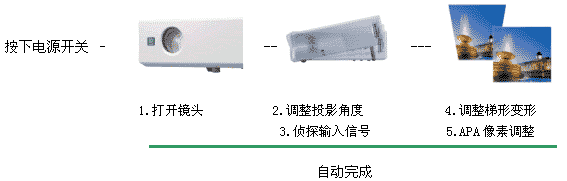 1. 電動鏡頭投影機 一旦開機,投影機鏡頭將自動打開