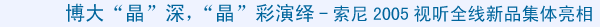 在會議現場,索尼通過不同環境風格展示其2005新品陣容,讓每一位與會嘉賓領略索尼科技的無限魅力。融合不同居室風格的家居情景展示,無論是起居室、臥室、還是書房,索尼產品都能充分體現現代家居的時尚元素;索尼技術展示區展示的是3片式液晶技術、S-Master純數碼功放技術、第7代索尼液晶屏和冷陰極背光源技術的卓越表現。“高清世界 HD World”的體驗,不同系列產品的對比,也都力求通過豐滿的視角,全方位展示領先的索尼科技。索尼為用戶傾力打造的個人影音娛樂解決方案、家庭影音娛樂解決方案,帶給參觀者的是完美的視聽感受。