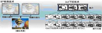 這項特別的Sony技術通過隔行掃描/逐行掃描來提高畫面質量。經2-3及2-2下拉處理的影片源信號被偵測將被非常精確地再現。