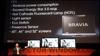 索尼還展出了其在美國的第一個“綠色系列” 的Eco Bravia環(huán)保液晶電視,新的VE5系列。它包括KDL-52VE5,