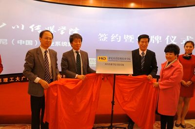 索尼向四川傳媒學院成功交付新一批索尼高清攝像機、監視器、3D制作系統等設備,共建索尼高清影視技術學院四川傳媒學院實驗基地,簽約儀式在四川傳媒學院隆重舉行。迄今為止,四川傳媒學院合計配備索尼的高清設備共約700余臺,擁有一輛用于學生實習和校園節目制作的、索尼系統為核心組成的6訊道高清轉播車,新建成的索尼和四川傳媒學院共建的3D高清演播室配有索尼的3臺TD300、一套DFS-900切換臺、3D/高清監視器等最新產品和系統,四川傳媒學院已成為目前中國最大規模配備索尼專業級別視音頻設備的高等院校。