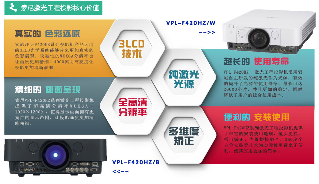 相較于傳統(tǒng)光源的投影產(chǎn)品,激光光源擁有不少讓人興奮的優(yōu)勢(shì),廣色域、長(zhǎng)壽命、高穩(wěn)定性與超強(qiáng)的環(huán)境適應(yīng)性讓不少方案設(shè)計(jì)人員津津樂(lè)道,而其擁有的某些特色將會(huì)為各類行業(yè)應(yīng)用帶來(lái)不同的改變與突破。索尼VPL-F420HZ激光工程投影產(chǎn)品除了擁有以上的優(yōu)勢(shì)之外,還融入了索尼對(duì)于投影技術(shù)的積淀與理解,更加豐富的功能設(shè)計(jì)與更加全面的畫質(zhì)表現(xiàn)足夠吸引眼球,而在特定的實(shí)際應(yīng)用環(huán)境中,這些優(yōu)勢(shì)是否能夠完全發(fā)揮或者會(huì)遇到哪些我們意想不到的情況呢? |