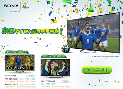 此外,即日起至2014年6月16日,購買65X9500B、X9000B系列、W950B系列、W850B系列、55W800B、60W600B、60WM15B等機型,還可獲贈價值899元的MDR-HW300K無線立體聲耳機系統1個,配合索尼液晶電視,與外界隔絕,享受屬于你自己的巴西世界杯。