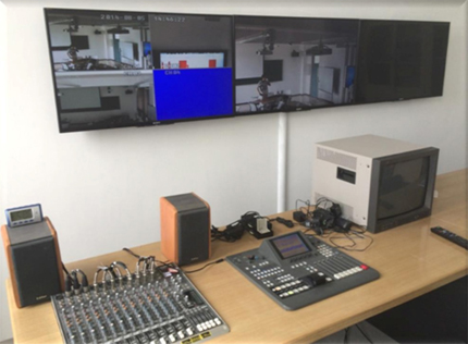 506室為錄播控制室,主要是對504精品課的錄制。它將教師在504授課過程,通過視頻會議實現課程直播,未來信號可以到大播機房,實現到全國各地的直播。