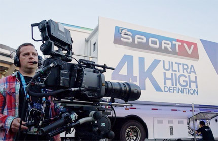 [投影之窗現場報道] 2013年10月份的NBA中國賽上海站,SMG和百視通在現場通過兩套索尼F55和一臺F65拍攝制作了美職籃季前賽的4K盛況,并且通過現場切換、光纖傳輸,將超高清信號傳至SMG臺內的索尼4K投影,完成了國內首次4K現場轉播。雖然4K的影視制作已經如火如荼,但現場轉播應用還處在摸索和測試階段,從拍攝、現場制作、存儲到傳輸,各個環節都在逐步完善,直到2014年巴西世界杯,在索尼與FIFA和HBS的通力協作下,實現了首次大型賽事全球范圍的4K直播,各個環節鏈路基本打通,獲得了圓滿成功,為4K轉播在技術領域設立的標桿。
