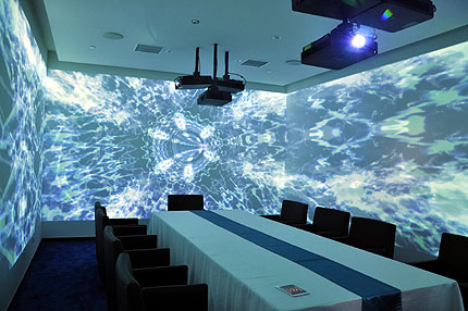為了營(yíng)造出最好的體驗(yàn)氛圍,放題餐廳專門辟出一個(gè)包間,希望通過(guò)科技營(yíng)造出一種完全的沉浸式體驗(yàn)。讓客人進(jìn)入其中后,能夠忘卻掉門外紛擾的世界,仿佛置身于海洋、星空、山林,一邊品嘗健康的美食,一邊愜意地徜徉,獲得徹底的放松。針對(duì)放題餐廳的要求,索尼公司及其核心經(jīng)銷商北京雅駿威科技發(fā)展有限公司參考了國(guó)內(nèi)外眾多案例,經(jīng)過(guò)多次設(shè)計(jì),確定了四面墻360度全投影影像覆蓋的方案。考慮到空間有限、長(zhǎng)時(shí)間工作、融合拼接投影亮度衰減不均勻、傳統(tǒng)投影燈泡使用壽命低、散熱等問(wèn)題,最終選擇了索尼VPL-F420HZ/B激光工程投影機(jī),它集高亮度、長(zhǎng)壽命、大畫面、免維護(hù)、易安裝、低散熱、可更換鏡頭等多重特色于一體,且視覺(jué)沖擊力強(qiáng)、顯示效果出色,為整體方案的完美呈現(xiàn)提供了良好的保障。