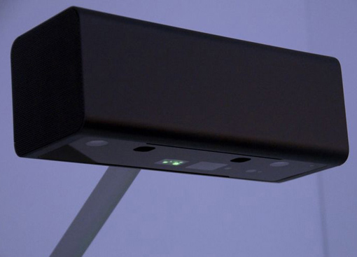 Lab展示了新成果,是一個小巧的“黑盒子”,外形類似普通的便攜藍牙音箱,但實際上是桌面投影觸控交互設備,投影內容很逼真,視覺效果不錯,內置攝像頭可以測算距離,進行交互動作。