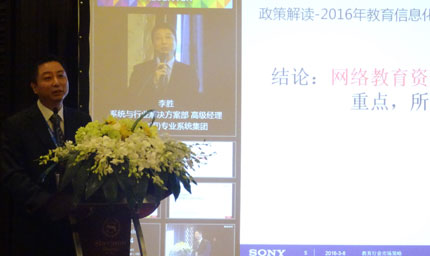 索尼中國專業系統集團教育解決方案組高級經理李勝分析解讀2016年教育信息化工作的政策要點