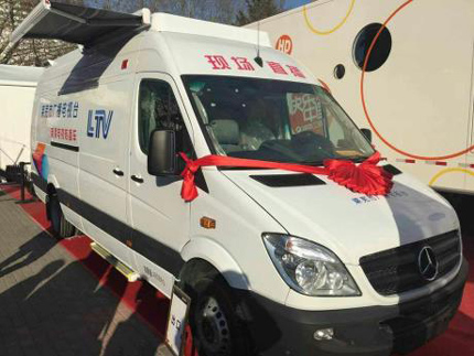 轉播車,該車采用了6訊道索尼HSC-E85RF高清光纜攝像機、MVS-3000A高清視頻切換臺、LMD-A220高清液晶監視器及PVM-A170高清OLED監視器等廣播級配置,通用化設計完全滿足節目直播和大中型轉播車級聯使用,同時又能靈活滿足戶外中小型綜藝及訪談、直播類節目的普及型需求。