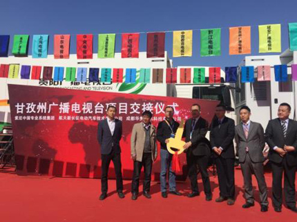 在新長征戶外展區,由索尼中國專業系統集團、航天新長征、成都華雋視訊科技有限公司聯合舉辦了甘孜州廣播電視臺高清電視轉播車交接儀式,該項目包括一輛8+2訊道高清轉播車,一輛6+2訊道OB40高清轉播車和一輛衛星直播車。索尼中國專業系統集團銷售總監吳永全出席并致辭。