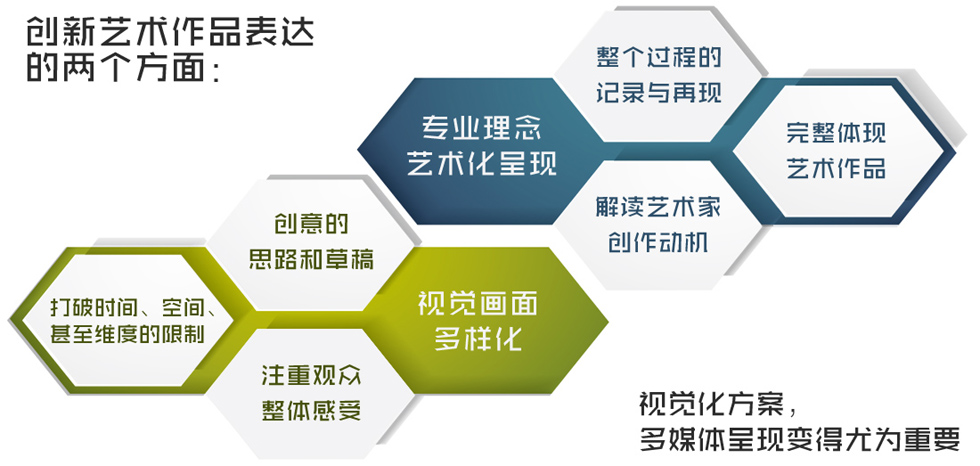 從藝術(shù)作品詮釋的角度看,大屏幕影像是最好的手段,因?yàn)樗梢蕴峁┒喾N方式,非常自由,實(shí)現(xiàn)多角度,多維度的呈現(xiàn)。從創(chuàng)意思路和草稿開始,思路梳理、構(gòu)架體系、記錄過程、重現(xiàn)現(xiàn)場(chǎng)、信息反饋,這整個(gè)的過程,可以打破時(shí)間、空間、甚至維度的限制,共同呈現(xiàn)給觀眾,最重要的是,這個(gè)作品與過程,帶給觀眾怎樣體驗(yàn)和感受。所以,筆者認(rèn)為對(duì)作品的詮釋與記錄,已經(jīng)成為了藝術(shù)作品整體的一部分,對(duì)作品價(jià)值和意義有著重要的作用。相信激光工程投影機(jī)打造的大畫面將會(huì)越來越多的應(yīng)用于藝術(shù)展示中。 |