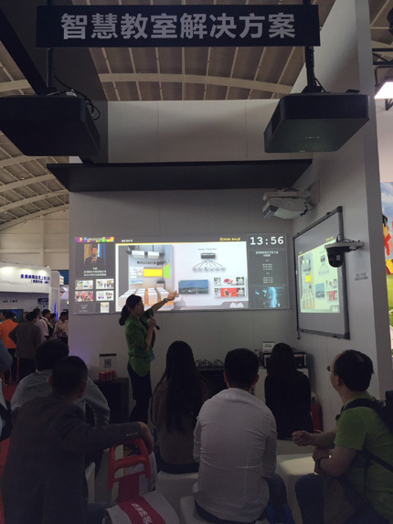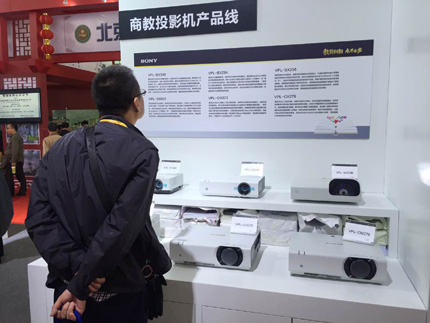 投影機(jī)在教學(xué)中的重要度毋庸置疑,這次教育展索尼同樣展示了陣容強(qiáng)大的教育投影機(jī)家族。特別展示了于2015年底上市的新品VPL-EX340,這臺(tái)投影機(jī)集高亮度,高畫質(zhì),良好的防塵特性等優(yōu)點(diǎn)于一身,適用于高校及企事業(yè)單位。在投影機(jī)展示區(qū),由四臺(tái)亮度為4200流明的VPL-EX340投影機(jī)分別投射寬度為1米的幕布,呈現(xiàn)良好的圖像效果。同時(shí),在投影機(jī)靜態(tài)展示區(qū)域,長焦,短焦,超短焦,小高清,多種亮度、不同焦距和分辨率滿足客戶多元化的需求的索尼商教投影機(jī)家族也作了集體華麗亮相。