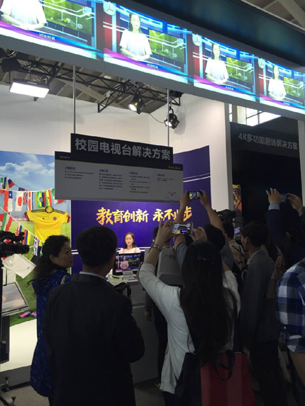 在本次教育展上索尼展示了新穎的“魔鏡”交互式數(shù)字標(biāo)版系統(tǒng),通過圖像采集裝置將人臉識(shí)別技術(shù),圖像跟蹤技術(shù),動(dòng)作識(shí)別技術(shù)于一身,讓站在魔鏡前面的參與者有興趣樂在其中,“魔鏡”可以推送不同內(nèi)容的同時(shí),還可將生動(dòng)有趣的靜態(tài)圖片和動(dòng)態(tài)音視頻內(nèi)容顯示在屏幕上面,與參與者形成交互,根據(jù)參與者需要在相應(yīng)設(shè)定的主題上進(jìn)行互動(dòng)。既適用于簡單運(yùn)動(dòng)游戲、換裝、內(nèi)容選擇、每日新聞提要顯示、標(biāo)版內(nèi)容顯示等日常商業(yè)和生活應(yīng)用,也適用于教育應(yīng)用,例如校內(nèi)新聞即時(shí)發(fā)布、優(yōu)秀教師、學(xué)生表彰圖片顯示和課表安排提醒等。 |