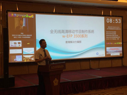 索尼公司教育解決方案部高級(jí)經(jīng)理李勝先生以目前最受關(guān)注的錄播為起點(diǎn),介紹了索尼公司錄播最新技術(shù),以及在錄播過程中如何結(jié)合多視窗演示系統(tǒng)為互動(dòng)教堂教學(xué)帶來新的互動(dòng)方式。同時(shí),李經(jīng)理重點(diǎn)介紹演示的索尼全無線高清節(jié)目制作系統(tǒng)也吸引了到會(huì)老師的目光。這套系統(tǒng)以創(chuàng)新的無線應(yīng)用和簡便的操作已經(jīng)贏得全國眾多學(xué)校老師的稱贊,成功應(yīng)用于大型公開課或?qū)W校重要的典禮活動(dòng)中。這套系統(tǒng)都支持用戶進(jìn)行視音頻信號(hào)的無線傳輸,而且只需一個(gè)老師就可以實(shí)現(xiàn)多機(jī)位操作,具有極大的使用便利性。
