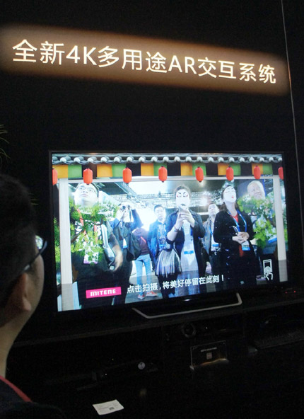 在專業(yè)顯示領(lǐng)域,索尼不僅擁有以投影機(jī)為中心的系統(tǒng)解決方案,同時(shí)還擁有獨(dú)具創(chuàng)意的“多用途AR交互系統(tǒng)”。本套系統(tǒng)不僅具備數(shù)字標(biāo)版的基礎(chǔ)功能,即基于網(wǎng)絡(luò)的遠(yuǎn)程管理、多畫面布局、按日程播放、運(yùn)行情況確認(rèn)等等,同時(shí)還擁有基于互動(dòng)的獨(dú)特功能。系統(tǒng)可識(shí)別觀眾的面部或運(yùn)動(dòng)與之進(jìn)行AR交互,并判斷不同觀眾的性別、年齡等,并選擇性地播放不同的內(nèi)容。