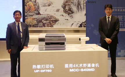 發布會上,索尼中國專業系統集團總裁井手司治先生、索尼日本醫療事業部產品規劃高級經理府中克樹先生共同為新品揭幕。作為一款真正4K級的醫用攝像機,MCC-S40MD在色彩還原及靈敏度方面有著其他同類產品無法比擬的優勢;UP-DF760熱敏打印機,保持了索尼打印機長久以來堅持的小巧精悍及高分辨率,而全新優化的機械及電路結構設計,使得打印更迅速,同時防故障及防塵性能也有效得到提升。