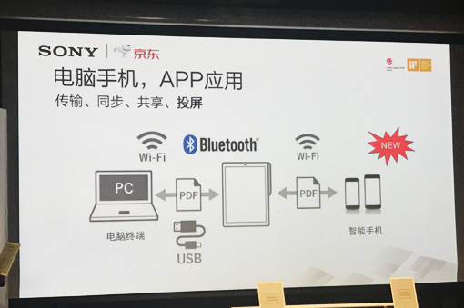 發布會上,索尼中國專業系統集團總裁本野桂先生、京東智能電教業務部總經理劉奐麟先生共同為電子紙揭幕,并宣布從即日起,京東商城開啟獨家在線銷售。
