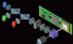 DLP是一種采用光學(xué)半導(dǎo)體產(chǎn)生數(shù)字式多光源顯示的解決方案,每一塊DLP芯片的核心是由微鏡所排成的陣列,它們以高達(dá)每秒上萬(wàn)次的高速切換。影像信號(hào)經(jīng)過(guò)數(shù)字處理,
