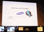 Hong介紹了三星在應用DLP技術方面與TI的合作情況及三星最新的DLP投影產品;神州數碼顯示設備業務部王哲先生介紹了神州數碼2005年DLP產品情況與展望。投影之窗作為行業資訊機構代表介紹了中國前投數據投影機近年來的發展與市場趨勢。活動中還展示了2005年發布的多款投影產品(DLP™ 光顯電視、僅重400克的袖珍投影機)。