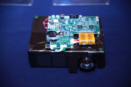 TI攜手DLP生態圈的各方合作伙伴,為與會者展示了各類基于DLP技術的終端產品和樣機,包括無屏顯示,汽車抬頭顯示,近眼顯示和互動式顯示等創新應用。除了以往展示過的中興、聯想等知名企業微投產品以外,這次又看到了許多企業的創新產品。