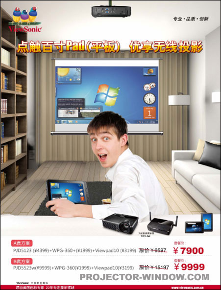 業(yè)內(nèi)首個(gè)無線投影解決方案終于破繭而出。近日,美國優(yōu)派(ViewSonic)正式上市無線投影解決方案,在此解決方案中,優(yōu)派憑借其產(chǎn)業(yè)鏈優(yōu)勢(shì),以投影機(jī)為核心,史無前例的通過將傳統(tǒng)投影顯示設(shè)備與時(shí)尚PAD結(jié)合的方式,為用戶提供了獨(dú)一無二的無線投影解決方案,真正讓用戶可以以便捷、優(yōu)價(jià)的方式實(shí)現(xiàn)投影的無線操作。