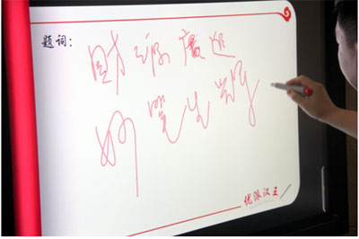 朱家良先生在致辭中提到“每一個屏都有一支筆”,正如同目前觸控技術(shù)在顯示領(lǐng)域的普遍應(yīng)用,描繪了一幅觸控手寫產(chǎn)品在教育、商業(yè)等多行業(yè)領(lǐng)域應(yīng)用的美好愿景。同時漢王科技張學(xué)軍先生也對優(yōu)派漢王未來的發(fā)展寄予了厚望和肯定,并表示未來漢王科技將會提供更多電磁觸控技術(shù)的支持。典禮期間,兩位還用觸控筆在觸控大屏上為公司開業(yè)題詞,留下“筆墨丹青”共同祝愿優(yōu)派漢王觸控科技的美好前景。