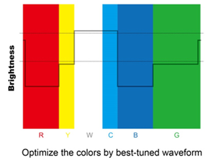 三,增色工具Waveform:優派通過增色工具Waveform進一步調整每種顏色的層次,針對色彩、亮度與色彩表現一致的標準之下,最終挑出最佳的顏色組合。
