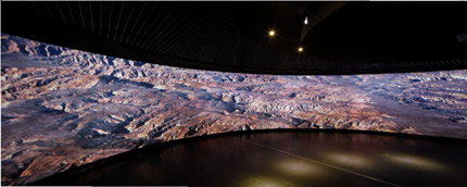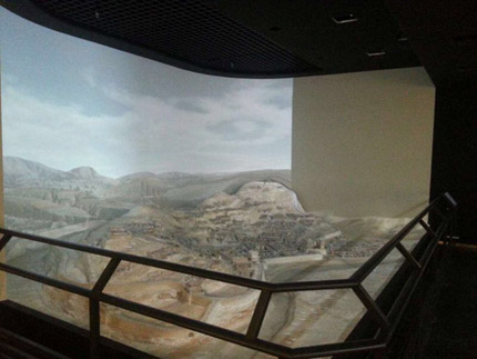 綏德縣博物館項目的另一大難點,就是用多媒體投影技術打造的綏德古城3D沙盤和綏德縣地貌沙盤。雖然無需采用360度安裝的大畫面拼接,但是沙盤的立體造型和崎嶇表面,相比表面光滑平整的平面或曲面投影,對于技術的要求更加嚴苛。
