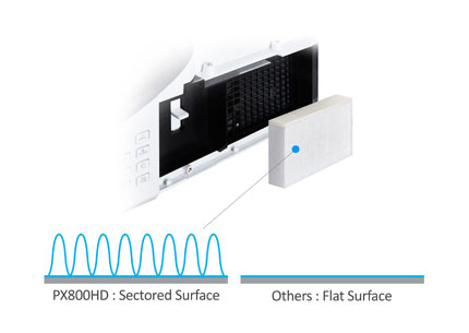 6倍速RGBRGB色輪利用特制鍍膜將光譜分段取色,集中RGB紅、綠、藍三色,擴大呈現可見色。提升色相與飽和度之外,對于影片、圖片的顯示用色更多了層次感,每一種顏色都可以很平滑不著痕跡地表現漸層色,讓畫面過渡很自然。