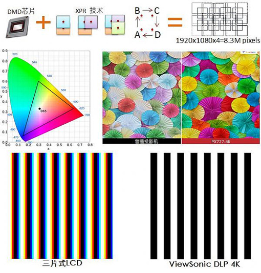 HD的清晰度,XPR功能可顯示830萬像素,令畫面栩栩如生。12000:1對比度可提供更多的圖像細節,為用戶帶來4K真“視”界。此外,PX727-4K