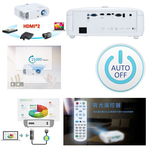 還配備了背光遙控器,在黑暗環境下也可操控投影機;投影機在SuperEco節能模式下,投影燈的平均壽命可達15000小時。內置10W