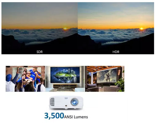 功能,加上3500lm高亮度可顯示830萬像素的清晰圖像,HDR投影顯示功能搭配SuperColor,呈現4K超高清投影畫面,為用戶提供家庭劇院般的體驗。