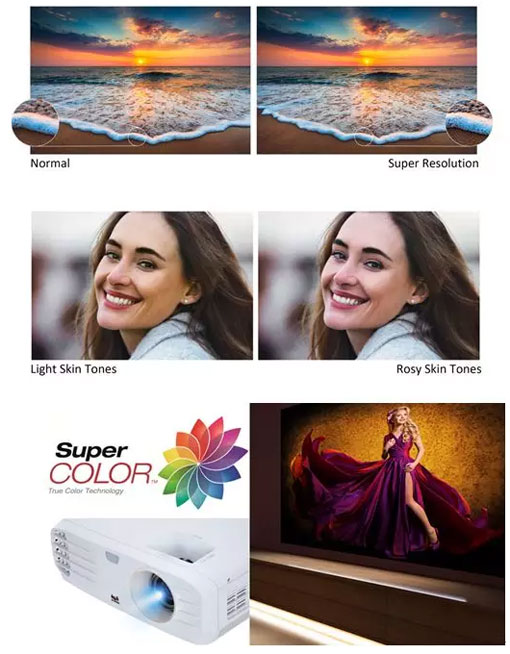 在色彩還原度上面,優派PX747-4K高清家用投影機采用SuperColor整合色輪及燈泡調整功能,寬廣的色域使顏色表現及色彩飽和度佳,在明亮或黑暗的場所也能投影出true-to-life的色彩。此外,圖像處理引擎Color
