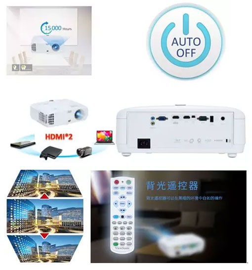 還配備了背光遙控器,在黑暗環境下也可操控投影機;投影機在節能模式下,投影燈的平均壽命可達