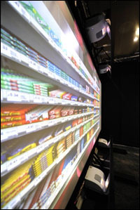 6臺D7“零距離”超短焦投影機拼接出的互動式超市 |