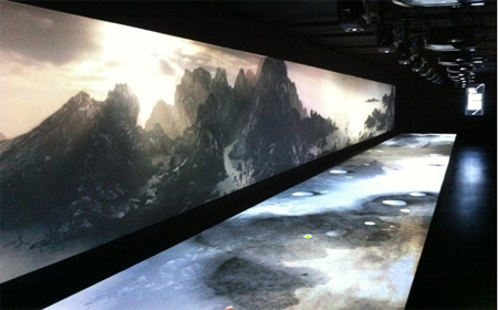 20多臺(tái)Vivitek麗訊工程機(jī)D5000拼接合作,展示全長(zhǎng)36.8米、高1.8米的《富春山居圖》 |