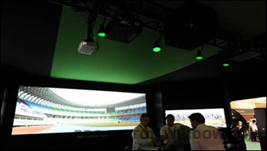 Vivitek麗訊infoComm展區由2臺D8300工程機投射出的拼接畫面 |