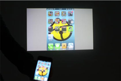 Q5除了可以直接讀取U盤,播放音頻、視頻及各種文件外,還能無線連接iPhone及安卓系統的各款手機和平板電腦,實現將手機屏幕畫面轉投出90英寸的超大屏幕,讓大家抬頭玩手機,歡唱起來。即使是iPhone5及iPad