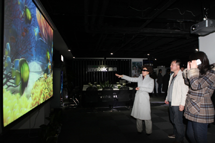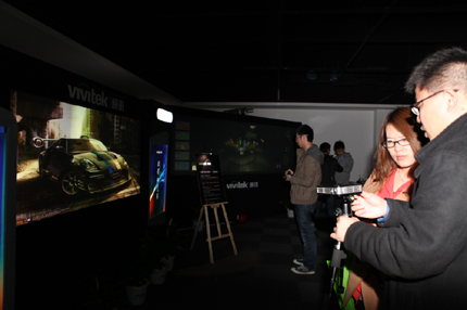 眾多媒體朋友爭相感受Vivitek麗訊3D工程機帶來的獨特魅力 |